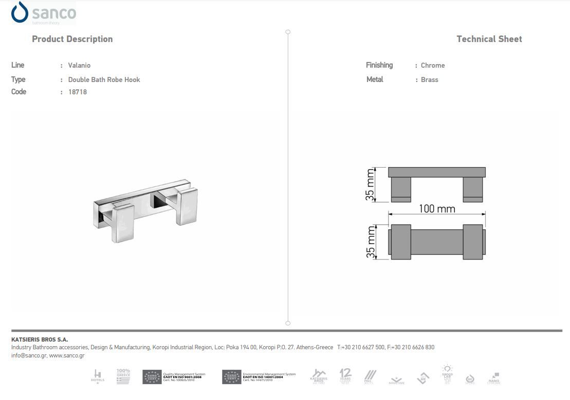 Άγκιστρο Διπλό Χρωμέ Sanco Valanio 18718-A03