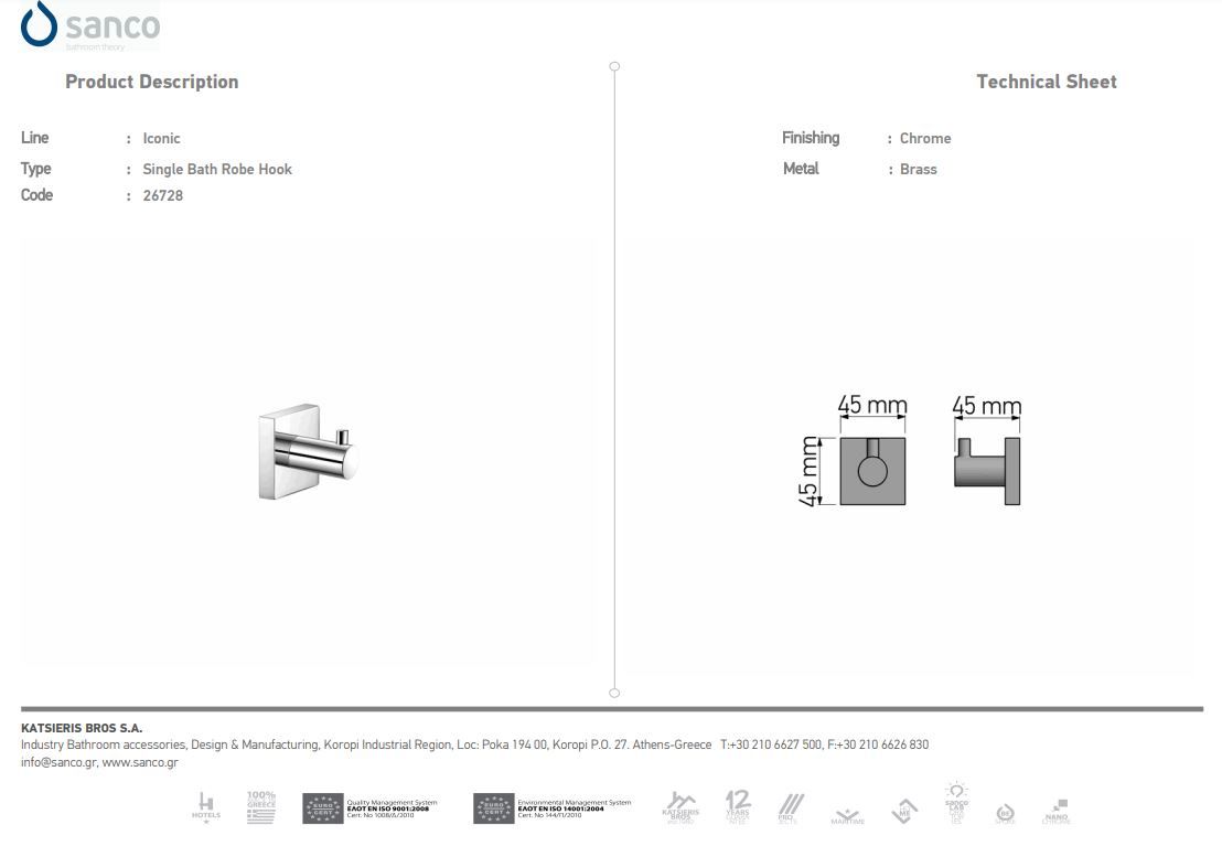Άγκιστρο Μονό Sanco Iconic Black Mat 26728-M116