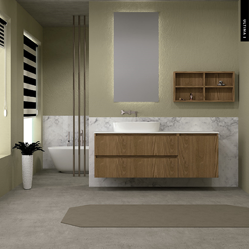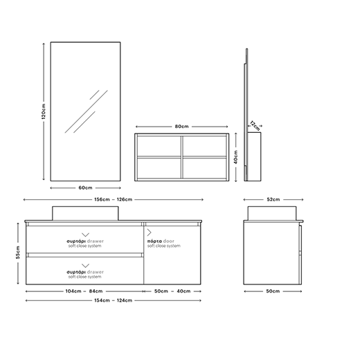 Έπιπλο Μπάνιου Μ126xB50xY55cm Βάση-Πάγκος Solid 12mm-Νιπτήρας-Καθρέπτης-Άνω Ντουλάπι, Μελαμίνη σε MDF Possitano Savvopoulos Ultima 01-8777