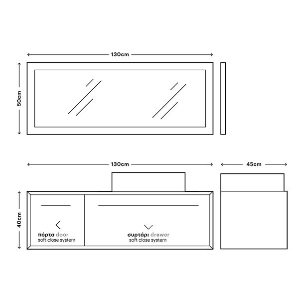 Διαστάσεις Καθρέπτη: M130xY50 εκ.