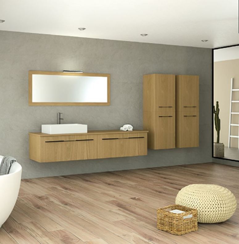 Έπιπλο Μπάνιου Μ140xB50xY35cm Βάση-Πάγκος-Νιπτήρας-Καθρέπτης-Φωτιστικό-2 Ερμάρια Δρυς Φυσικό Κ/Π Θαλάσσης Savvopoulos Ultima 08-4041