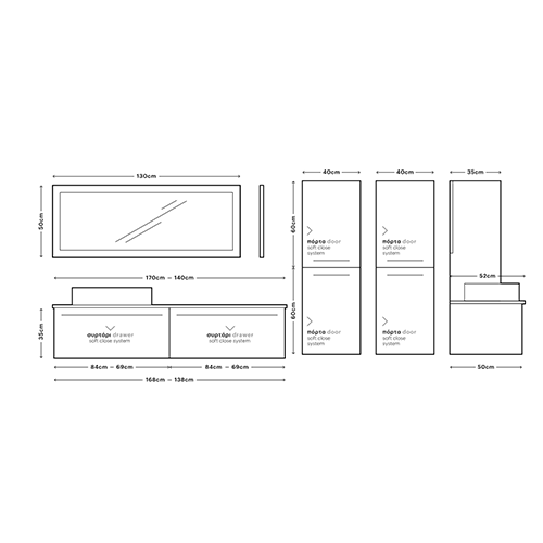 Το σετ Περιλαμβάνει: Βάση Επίπλου-Πάγκος Νιπτήρα -Νιπτήρα- 2 Ερμάρια 40x120 cm,-Καθρέπτη- Φωτιστικό Μαύρο