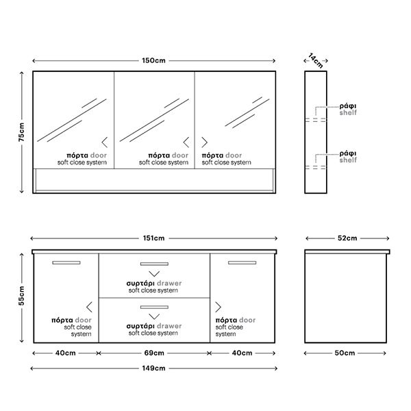 Σειρά: Ultima VIΔιαστάσεις Βάσης Επίπλου: Π151xΥ55*Β50 cm