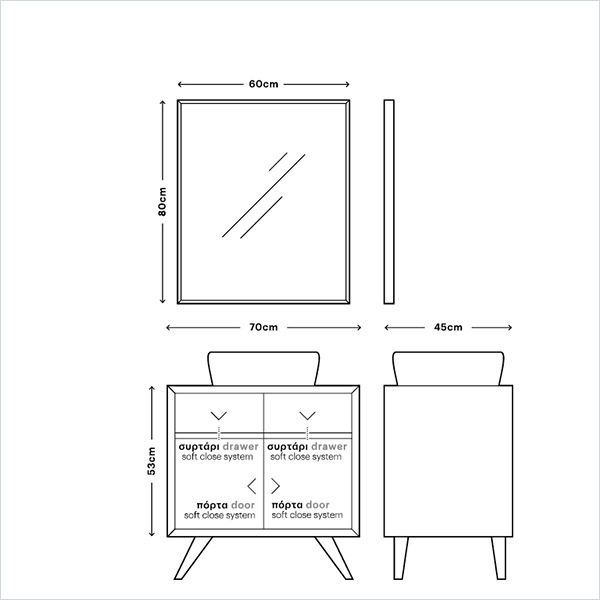 Το σετ Περιλαμβάνει: Βάση Επίπλου-Νιπτήρα-Καθρέπτη