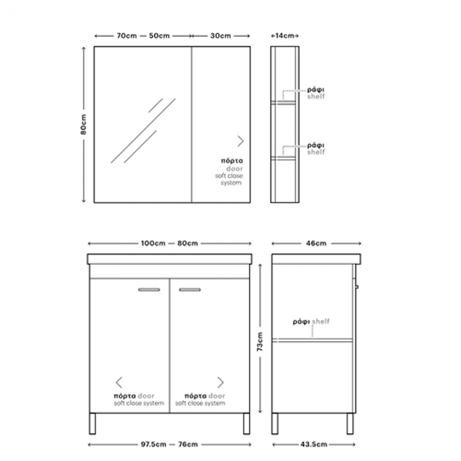 Έπιπλο Μπάνιου Σετ 100 εκ. Βάση-Νιπτήρας-Καθρέπτης-Φωτιστικό-Άνω Ντουλάπι Savvopoulos Argo II