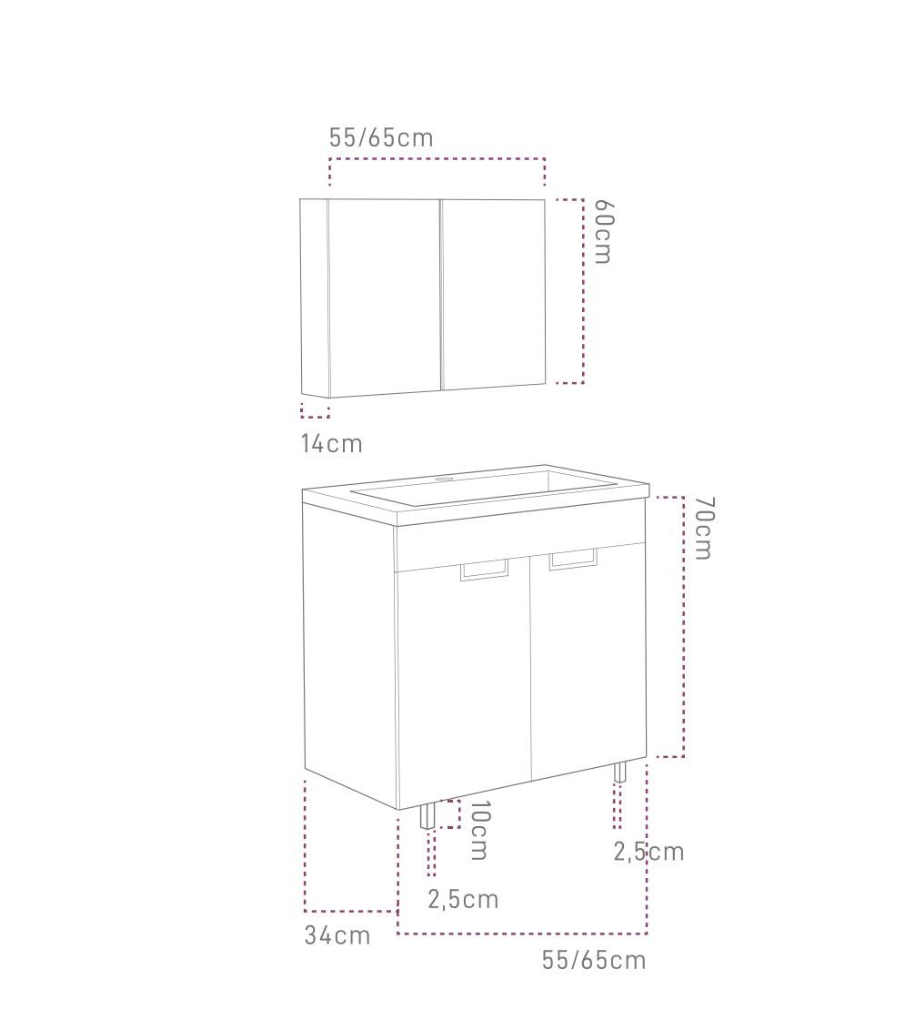 Έπιπλο Μπάνιου 55 εκ. με Νιπτήρα Χρώμα Anziano Natural Sanitec Lido 55