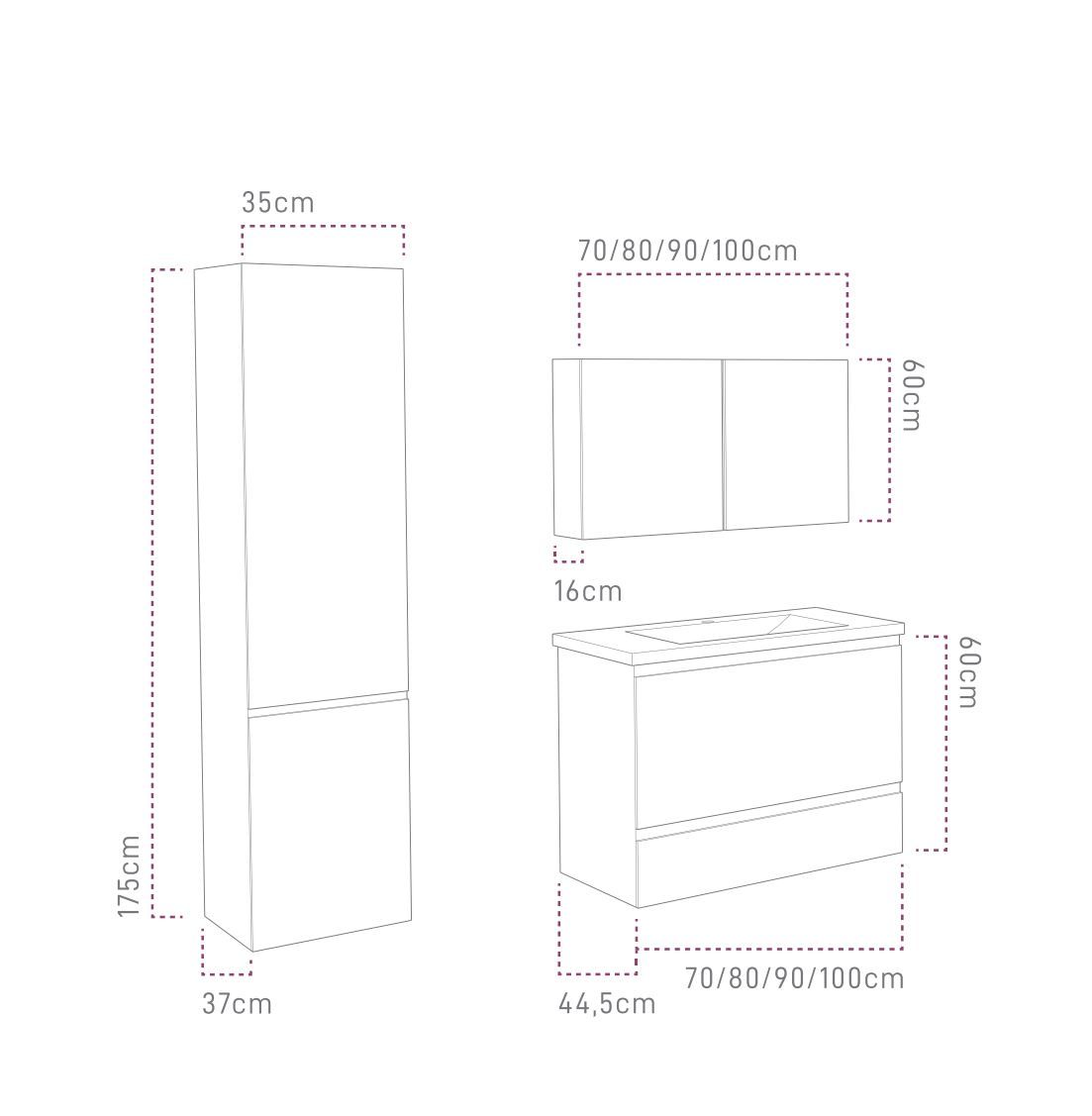Το Έπιπλο της σειράς Alba B διατίθεται σε διάσταση 70,80,90,100 εκ.