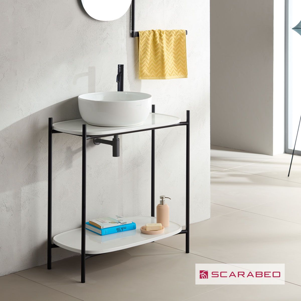 Έπιπλο μπάνιου Laila 2703-NROP με ράφια 2716+2710-300 χωρίς νιπτήρα, Scarabeo 27031610-NROP300300