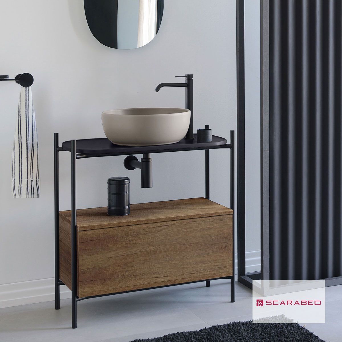 Έπιπλο μπάνιου Laila 2703-NROP με ράφι 2716-49 με συρτάρι 2712-89 χωρίς νιπτήρα, Scarabeo 27031612-NROP4989