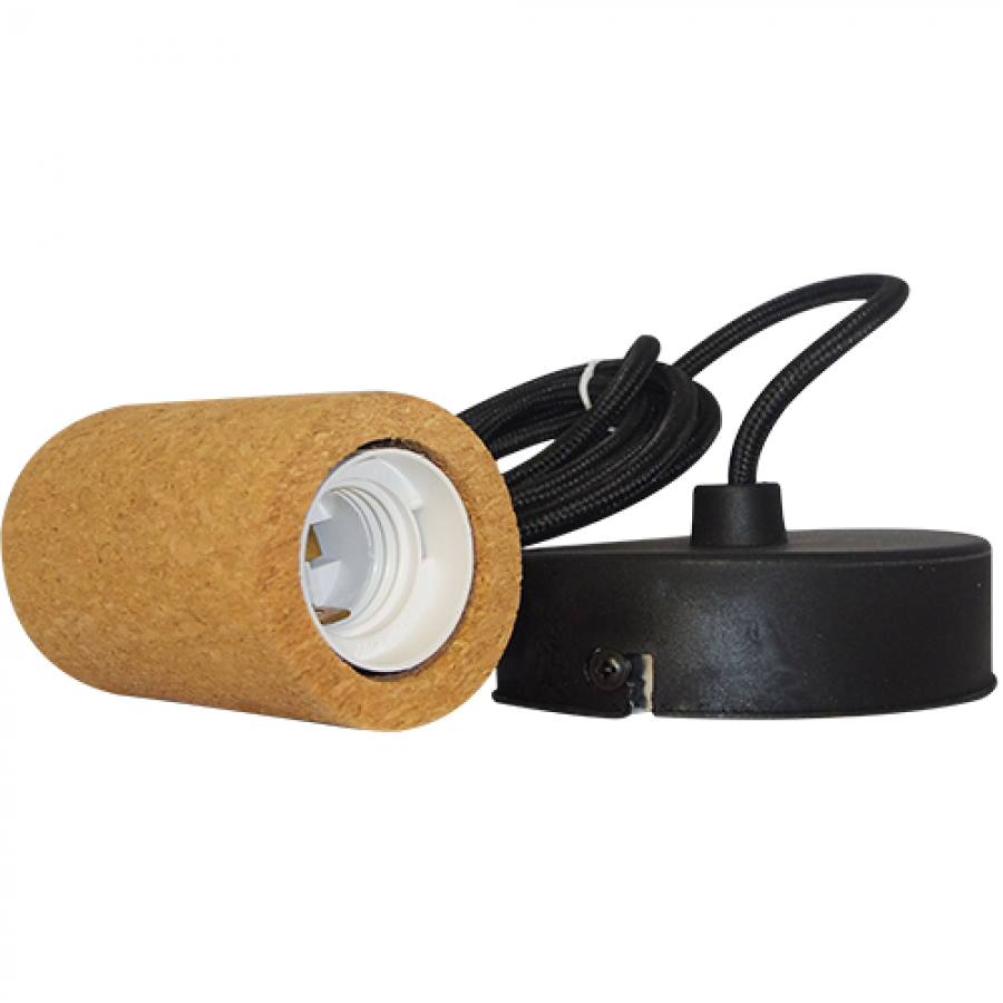 Ανάρτηση Ντουί Ε27 Φελλός-Ροζέτα Στρόγγυλη Σιδερένια Μαύρη Καλώδιο Υφασμάτινο Μαύρο 1,5mt Enjoy EL327106