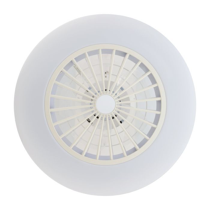 The fan is adjustable, with three different speed settings, while the integrated LED components produce a tuneable white light through the milky white diffuser.