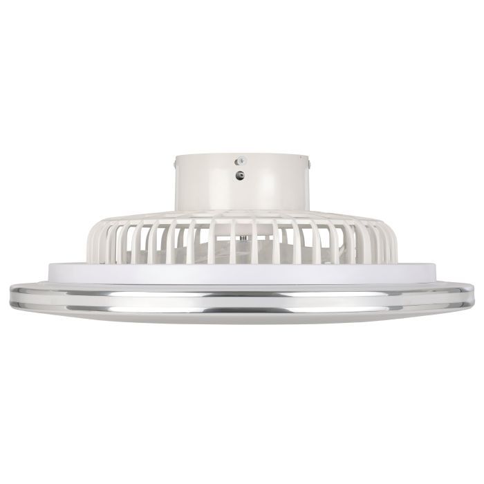 The LOVISCA ceiling fan features a compact body made from ABS plastic in a white finish and metallic silver accents.