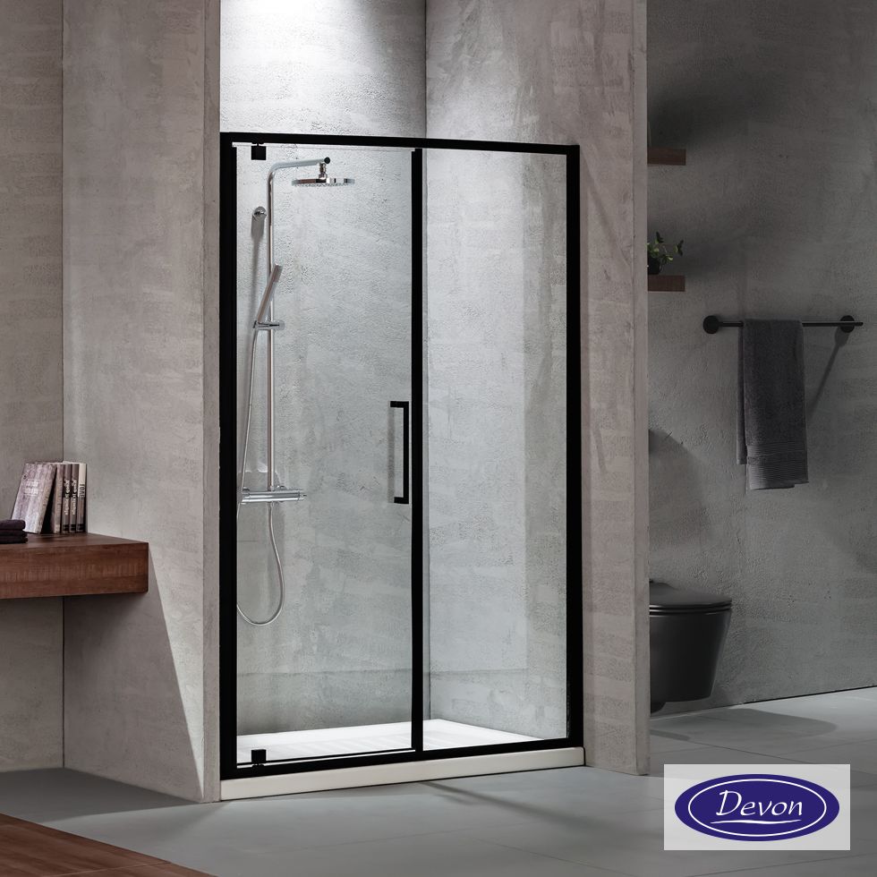 Ανοιγόμενη πόρτα ντουζιέρας PIVOT INFILL 140 ύψους 195εκ. ρυθμιζόμενη διάσταση από 137 έως 141εκ., Primus Plus Clean Glass Black Matt PIR140C-400