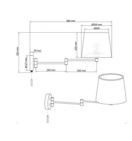 Απλίκα Επίτοιχη με Σπαστό Βραχίονα Μονόφωτη 1xE27 Μέταλλο Brass Mat-Αμπαζούρ Trio Lighting Lyon 209100108