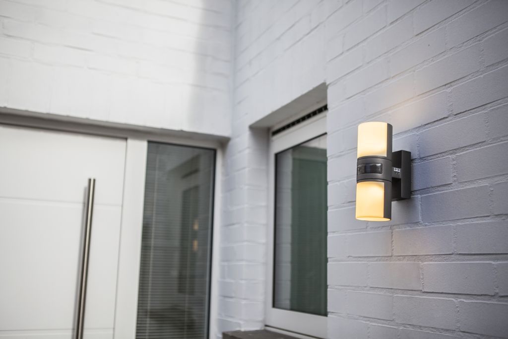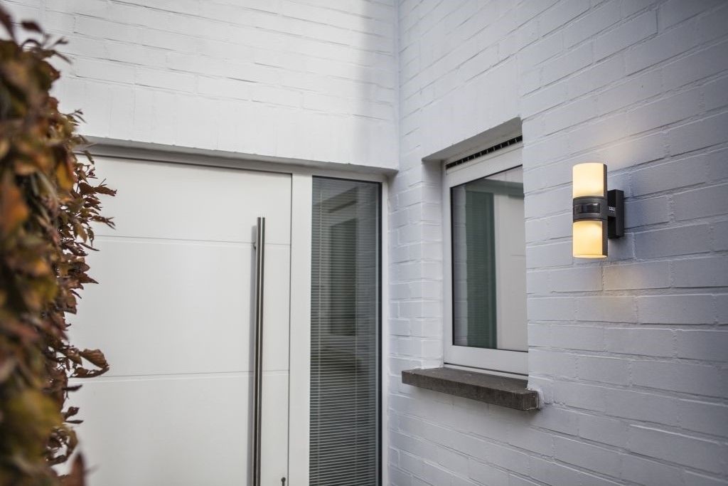 The two moveable heads offer you a 350-degree rotation possibility resulting in a nice glow on your external wall or a frontal diffuse light beam.