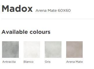 Το πλακάκι διατίθεται στις Αποχρώσεις: Gris, Blanco, Antracite, Arena.