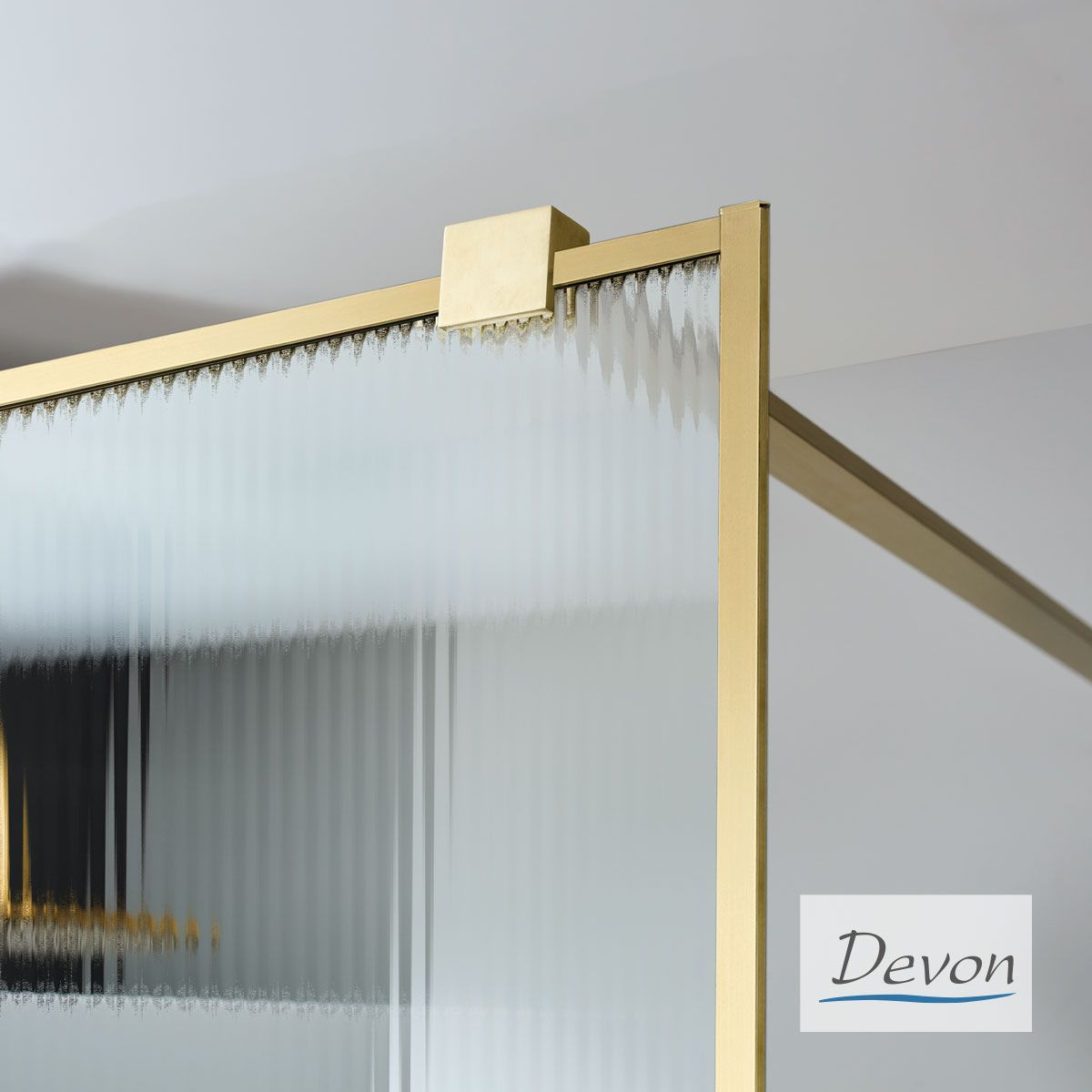 Διαχωριστικό κρύσταλλο ντουζιέρας IWIS Walk-in 80 ρυθμιζόμενo από 76 έως 78εκ., Devon Fluted Clean Glass PVD AISI304 Gold Brushed IW80FC-211