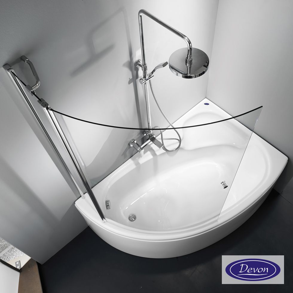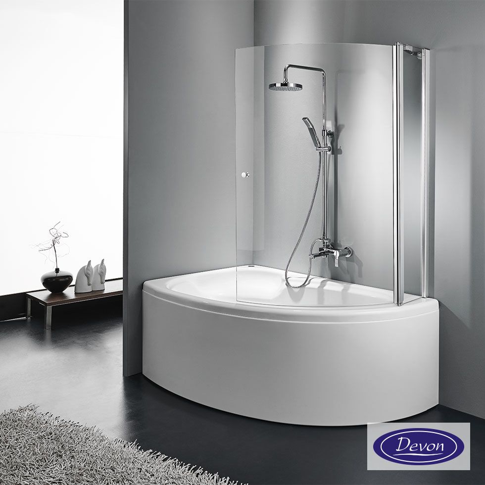 Διαχωριστικό κυρτό δίπτυχο μπανιέρας 120εκ. ύψους 140εκ., Devon Primus-Plus Clear Chrome DGC1200T-100