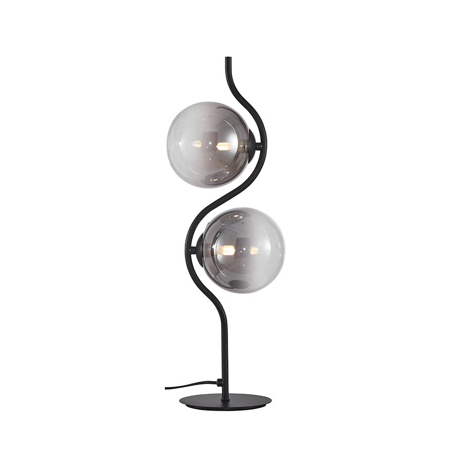 Επιτραπέζιο δίφωτο φωτιστικό, κατασκευασμένο από χειροποίητο γυαλί smoked και μεταλλικό σκελετό σε μαύρο χρώμα. Ύψος: 60εκ. Μήκος: 15εκ. Πλάτος: 20εκ. Λάμπες: 2 τεμ. Τύπος Λαμπτήρων: G9 Watt: 2*40w| Χρώμα | Μαύρο-Black |
