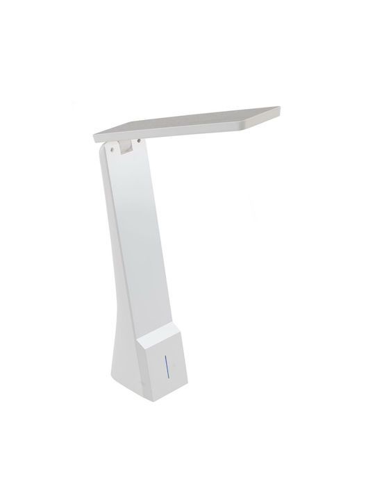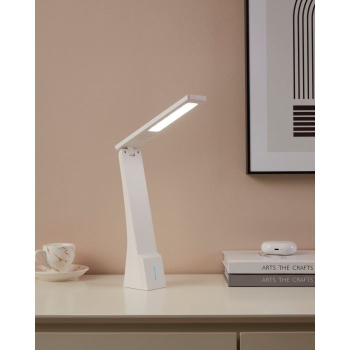 Επαναφορτιζόμενο φωτιστικό γραφείου της Eglo με ενσωματωμένο LED και αναδιπλούμενο βραχίονα, σε λευκό χρώμα.