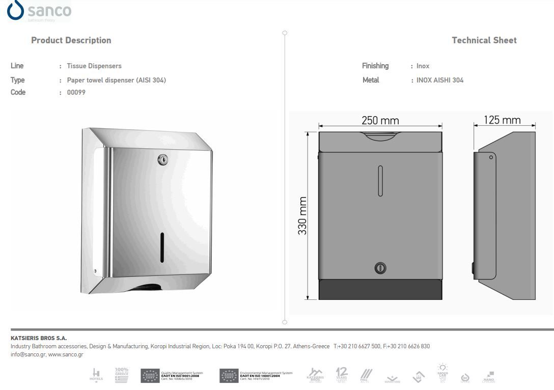 Θήκη για Χειροπετσέτες Επίτοιχη Sanco Tissue Dispensers Inox Aishi 304 Bronze Mat 099-M25