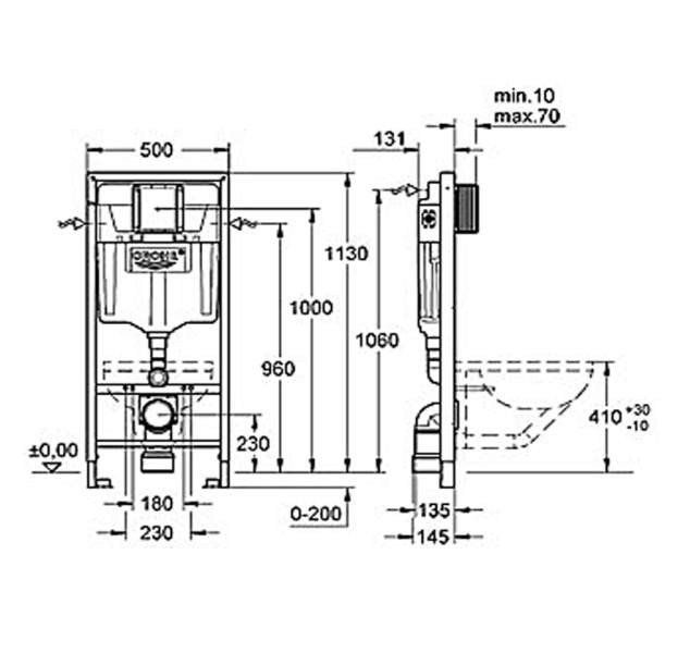 Πλαίσιο εντοιχισμού από χάλυβα με ηλεκτροστατική βαφή, με ενσωματωμένη στήριξη της κρεμαστής λεκάνης και τις συνδέσεις αποχέτευσης και πλύσης νερού.