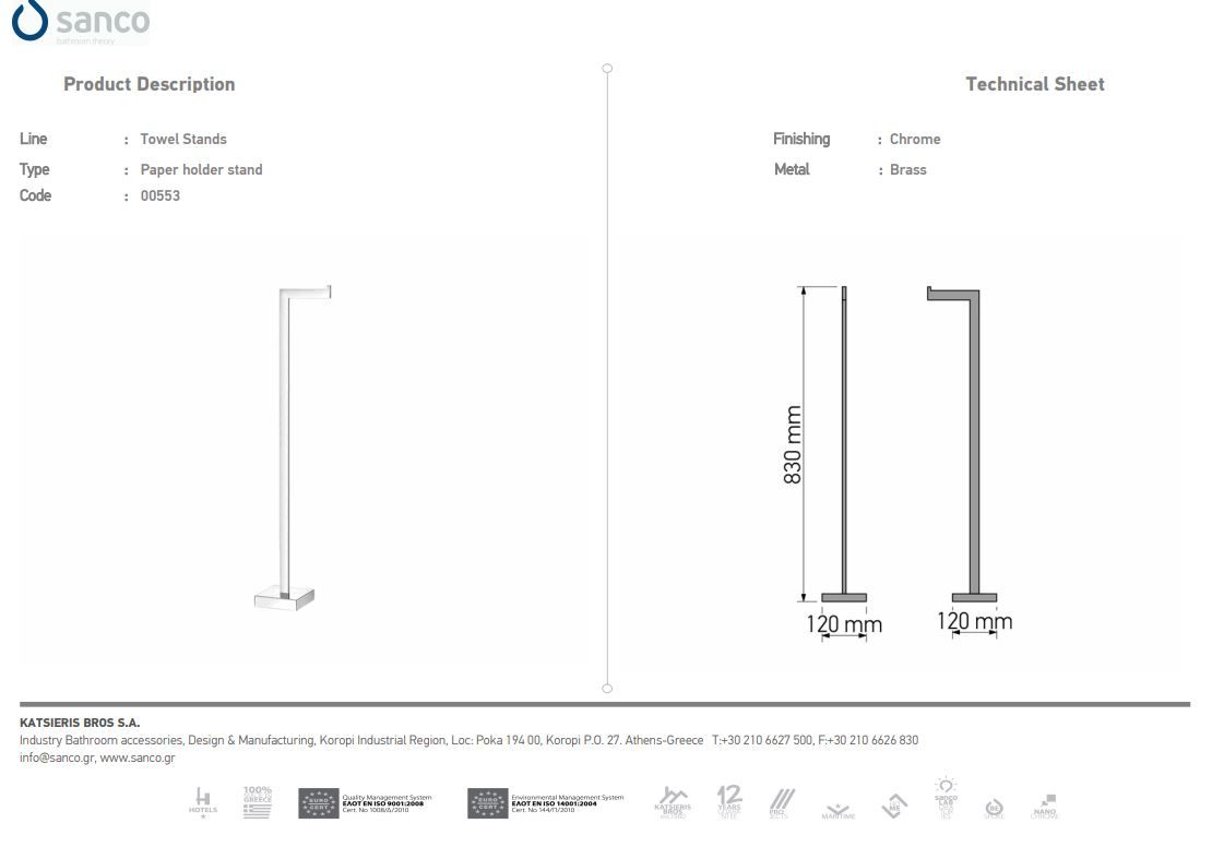Καλόγερος Χαρτοθήκη Επιδαπέδια W120 x D120 x H830mm Ορείχαλκος Sanco Bronze Mat 0553-M25