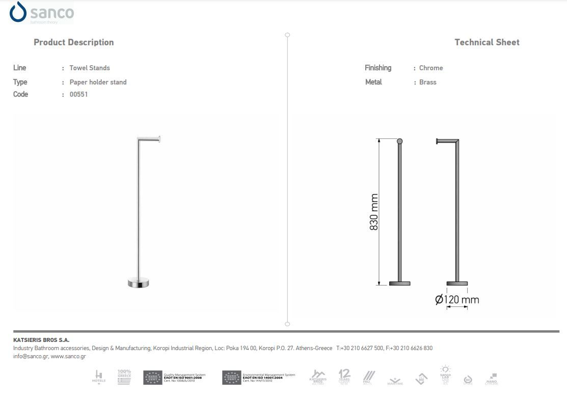 Καλόγερος Χαρτοθήκη Επιδαπέδια W120 x D120 x H830mm Ορείχαλκος Sanco Mat Black 0551-M116