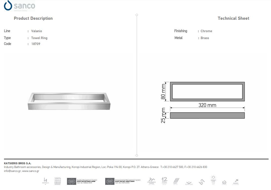Κρίκος Κλειστός Επιτοίχιος Sanco Valanio Chrome 18709-M116