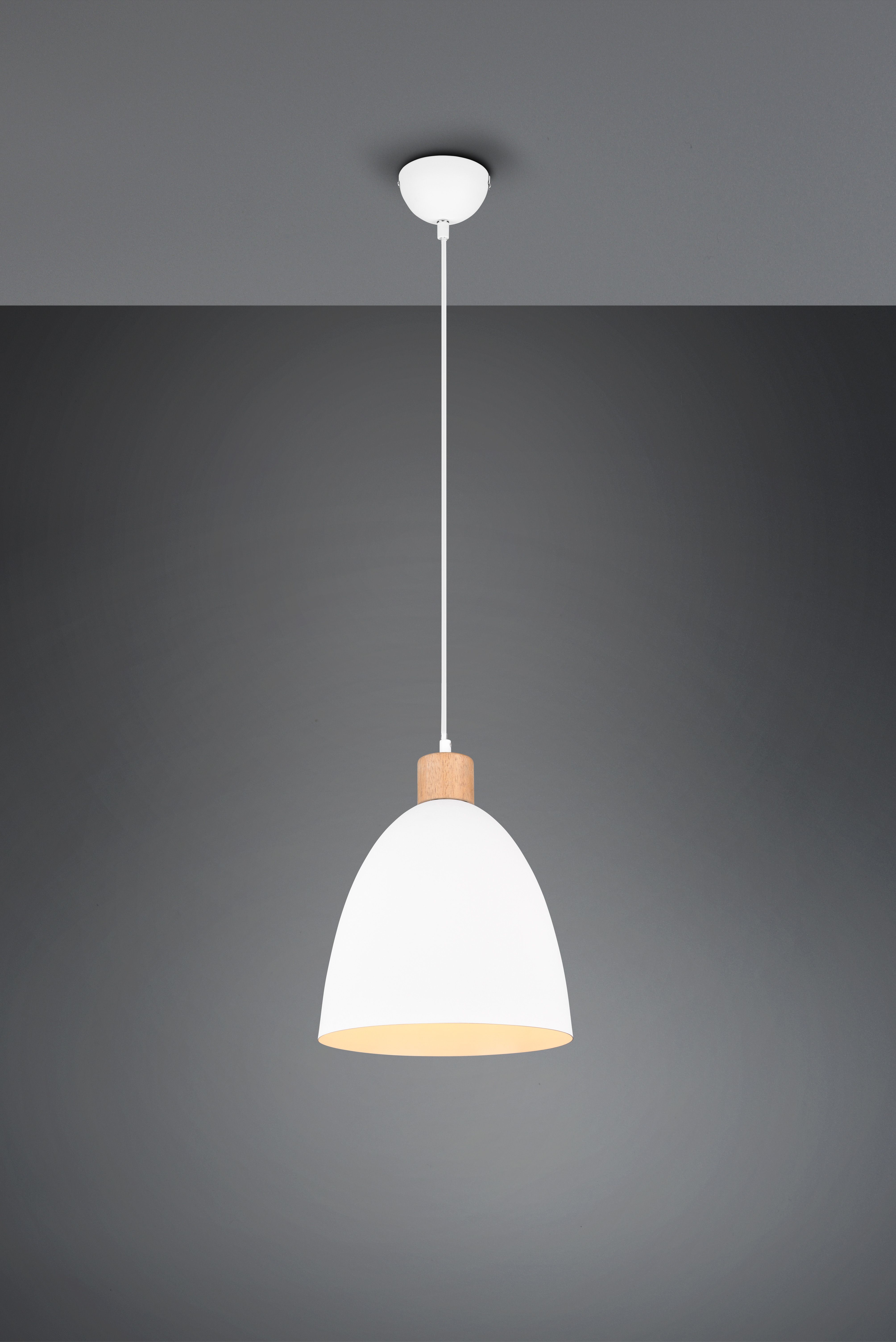 Μονόφωτο κρεμαστό φωτιστικό καμπάνα από την εταιρεία Trio Lighting σε λευκό χρώμα, με υποδοχή για έναν λαμπτήρα και ντουί E27. Είναι κατασκευασμένο από μέταλλο, ένα υλικό δημοφιλή στα κρεμαστά φωτιστικά οροφής, καθώς πέρα από τη μοντέρνα νότα που προσφέρει, είναι ιδιαίτερα ανθεκτικό στον χρόνο. Καθαρίζεται εύκολα με ένα πανί.