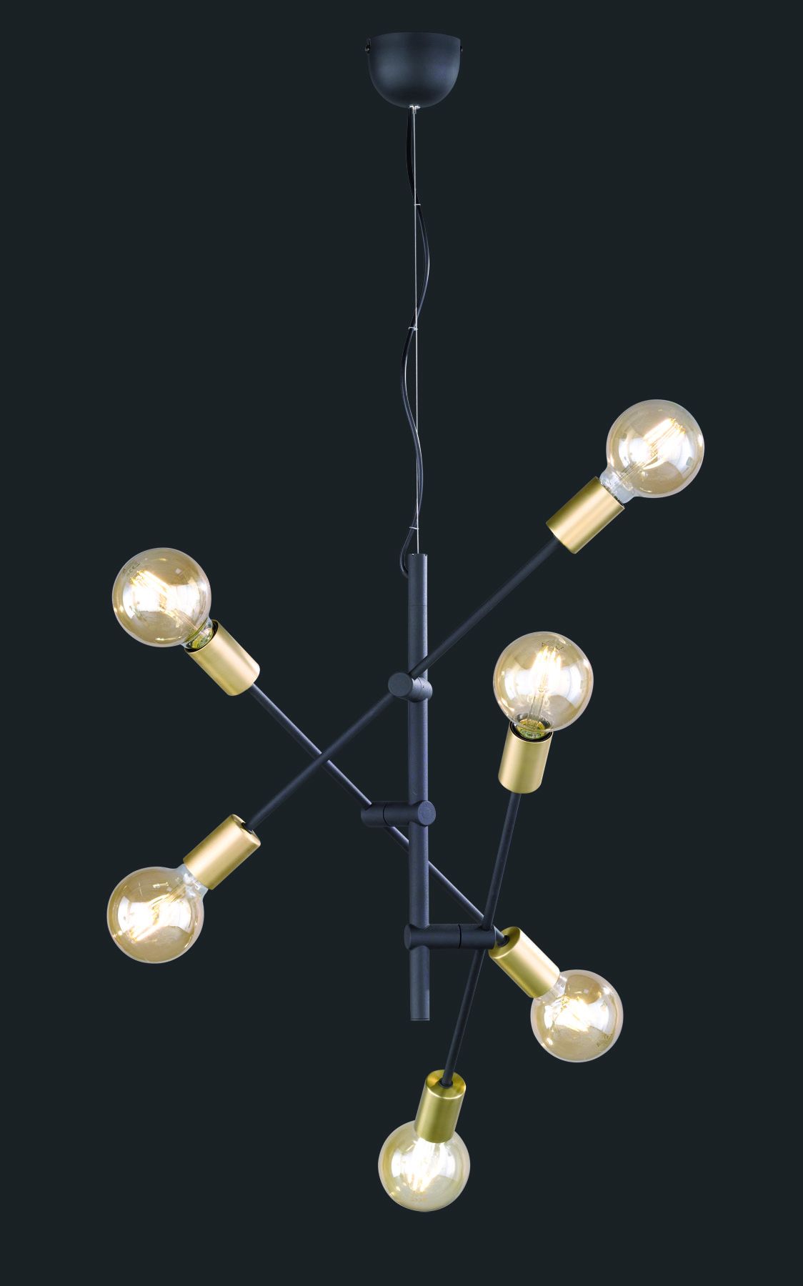 The simple, straight-lined metal frame in matt black with bronze-coloured lampholders creates a harmonious overall look.