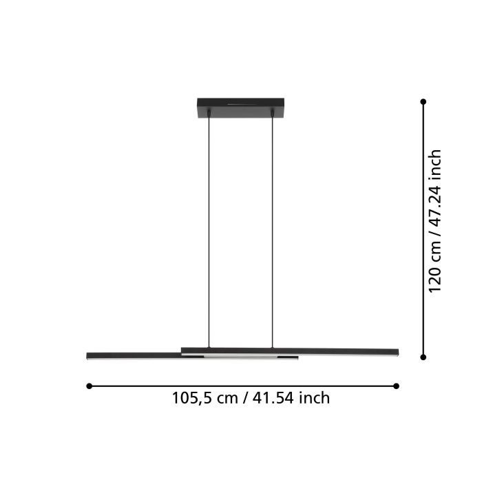 Κρεμαστό Φωτιστικό Μαύρο με Εφαρμογή Ράγα L105,5xH120cm LED 2700-6500K 2400lm Eglo Fraioli C 900081