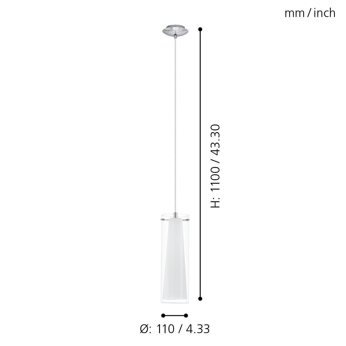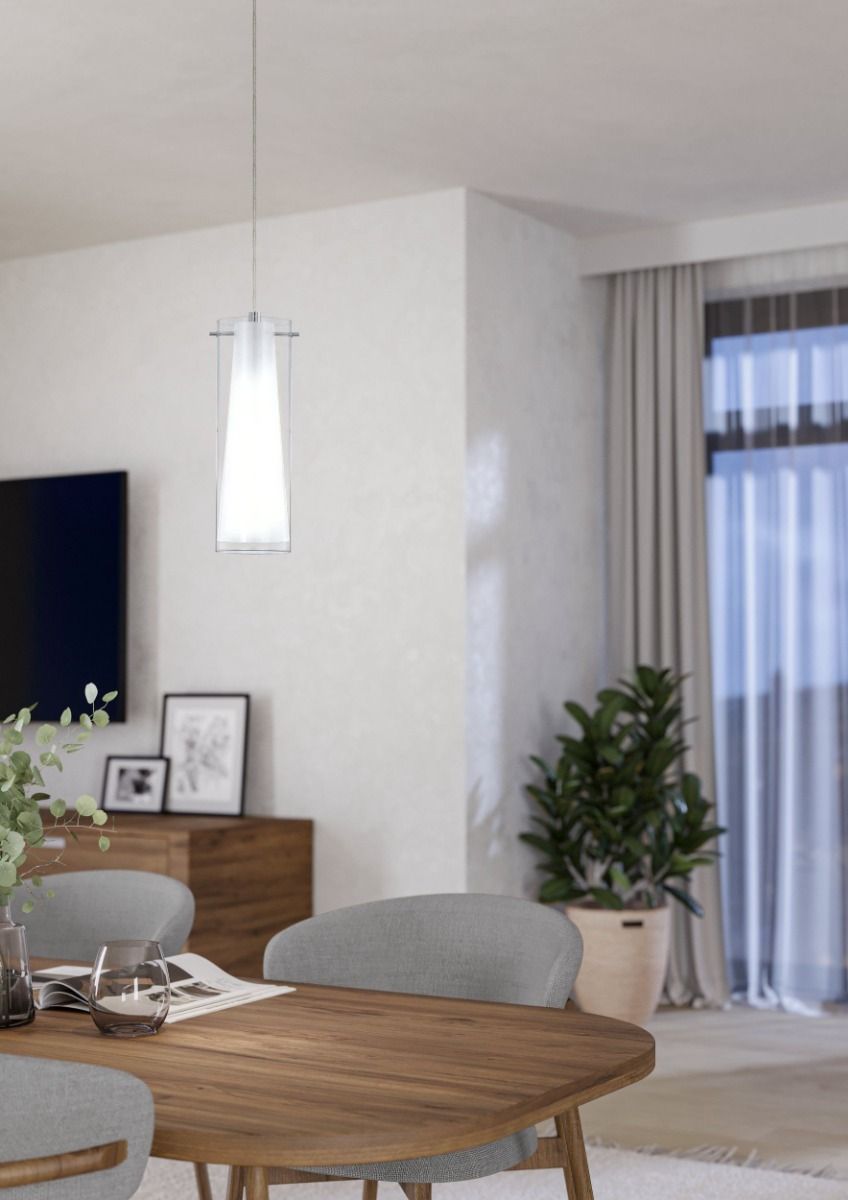Κρεμαστό Φωτιστικό Μονόφωτο 11xH110cm 1xE27 Χρωμέ -Γυαλί Διάφανο-Οπάλ Eglo Pinto 89832