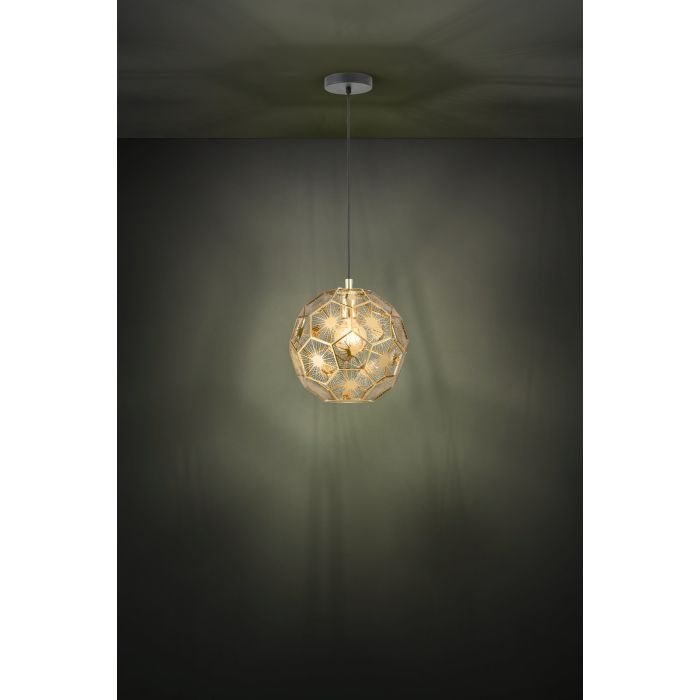Μονόφωτο κρεμαστό φωτιστικό από την εταιρεία Eglo σε χρυσό χρώμα, με υποδοχή για έναν λαμπτήρα και ντουί E27.