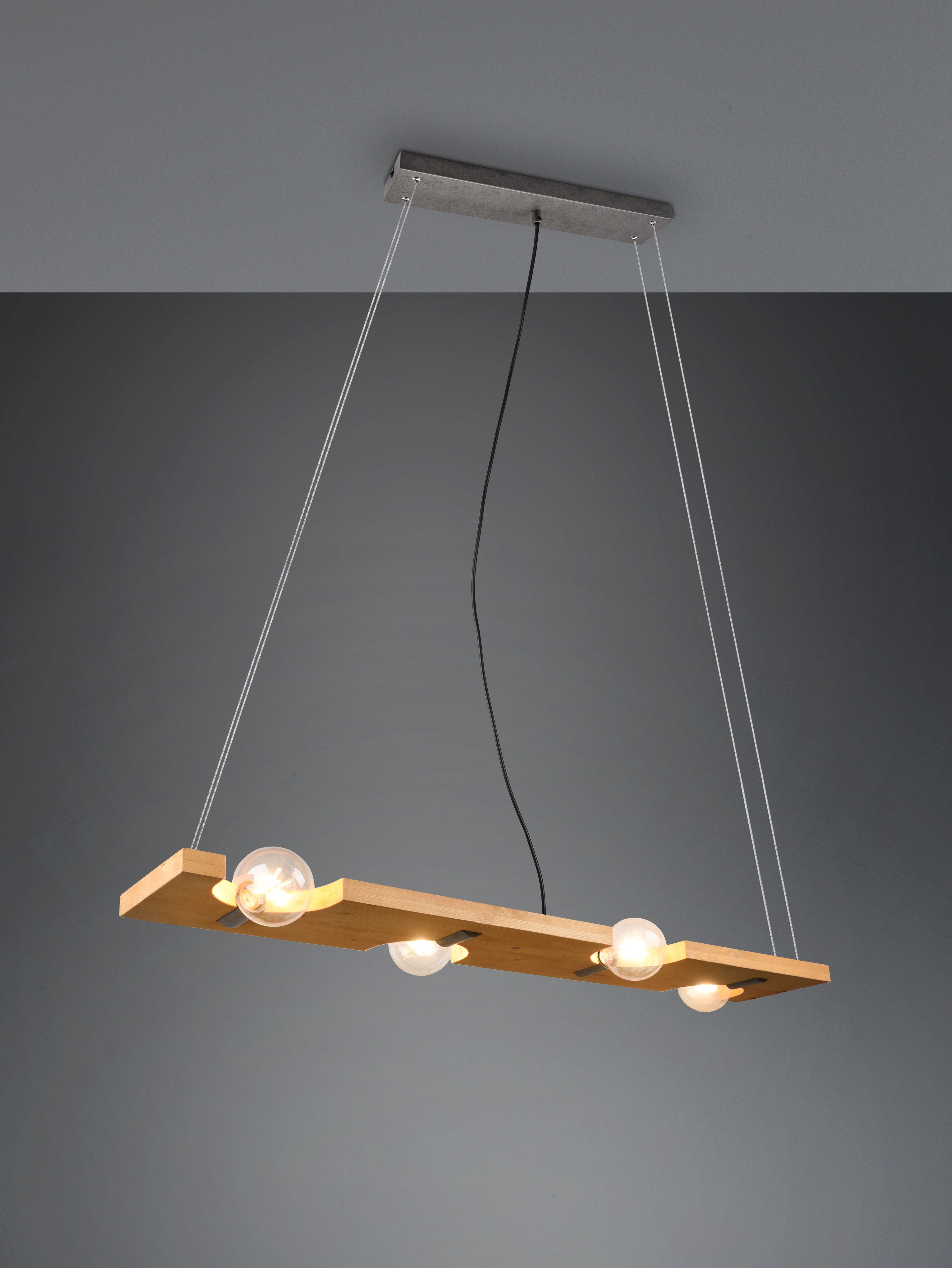 Due to the natural wood and the color design in antique nickel, the luminaire skilfully enhances your interiors.