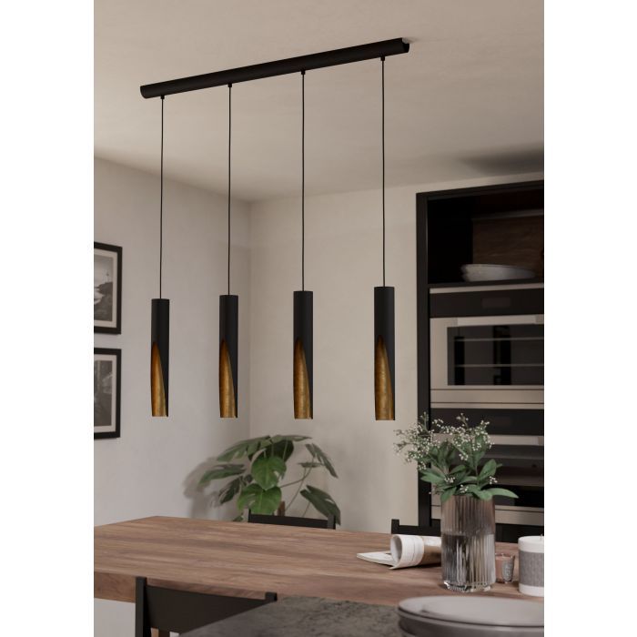 Πολύφωτο κρεμαστό φωτιστικό από την εταιρεία Eglo σε μαύρο χρώμα, με υποδοχές για 4 λαμπτήρες και ντουί GU10.