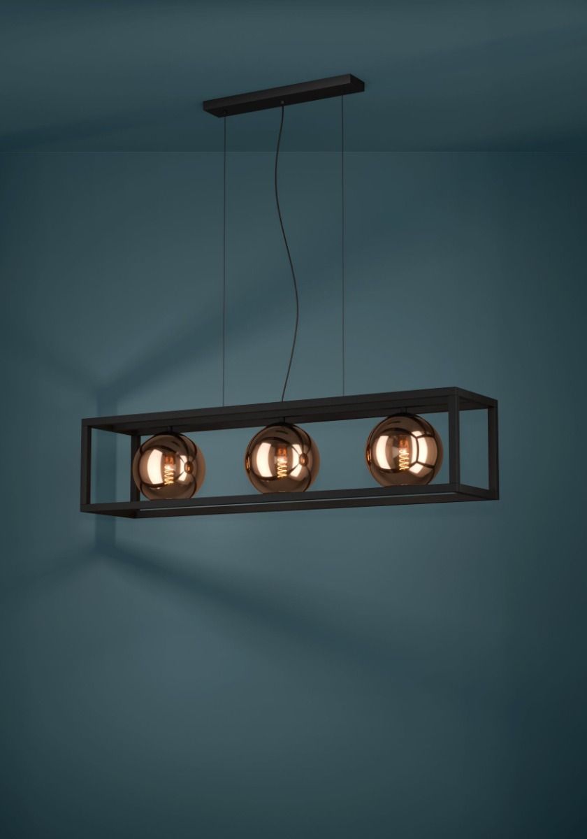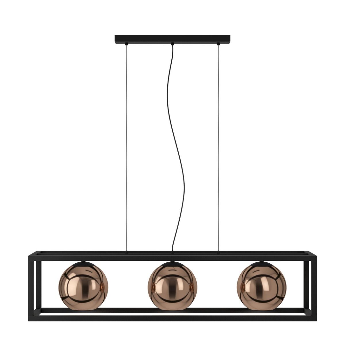 Κρεμαστό Φωτιστικό Ράγα L110xH150cm Τρίφωτο 3xE27 Μαύρο-Γυαλί Χρώμα Χαλκού Eglo Cordoba 390091
