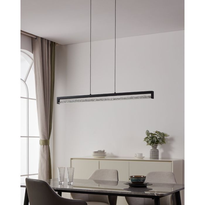 Κρεμαστό Φωτιστικό Ρυθμιζόμενο Μαύρο-Γυαλί-Κρυσταλλάκια L1000xH1100cm LED 2700-5000K 570lm Μαύρο Eglo Cardito 1 900895