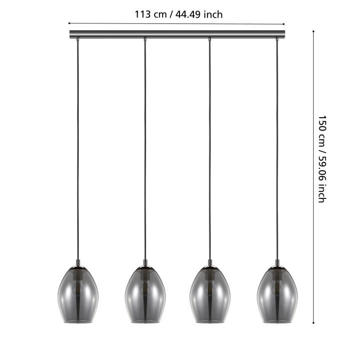 Κρεμαστό Φωτιστικό Τετράφωτη Ράγα L113xH150cm 4xE27 Μέταλλο-Γυαλί Eglo Estanys 39566