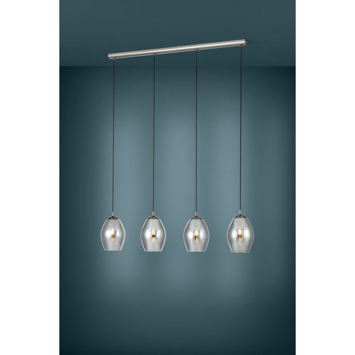 Πολύφωτο κρεμαστό φωτιστικό από την εταιρεία Eglo σε ασημί χρώμα, με υποδοχές για 4 λαμπτήρες και ντουί E27.