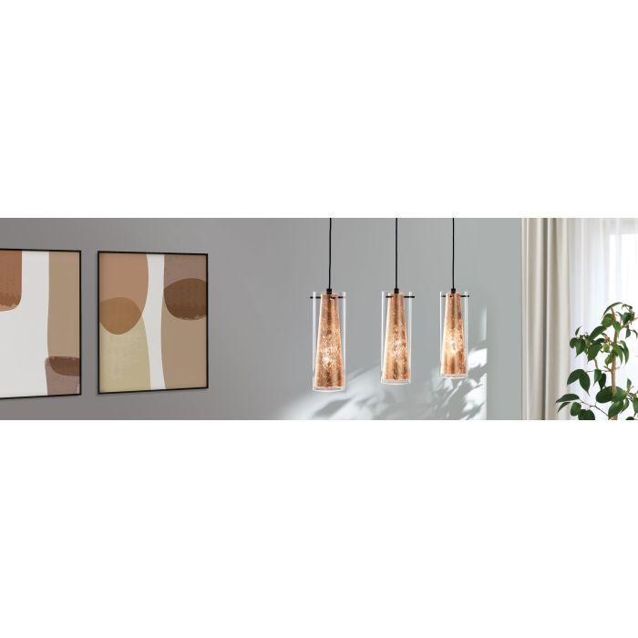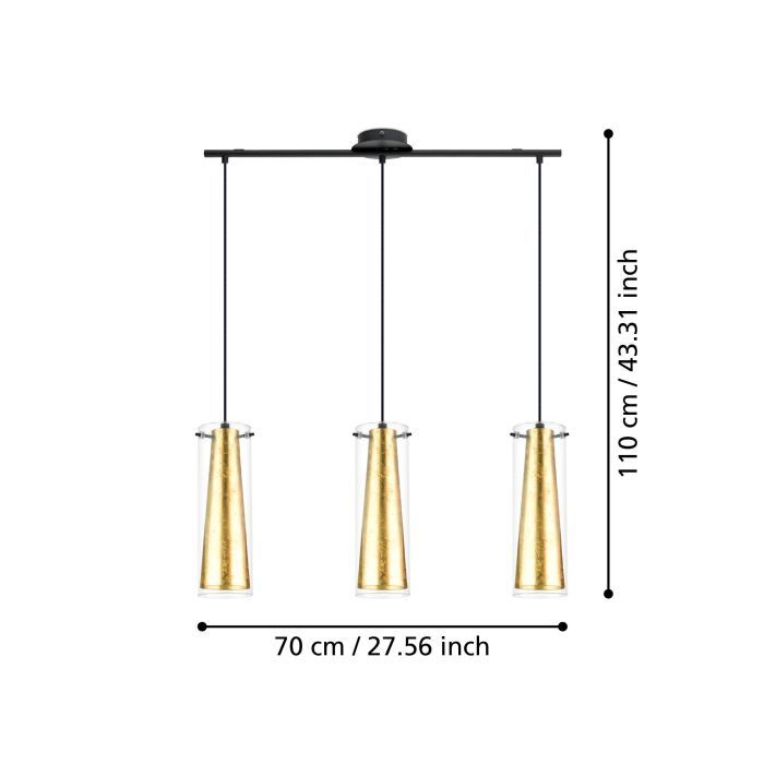 Κρεμαστό Φωτιστικό Τρίφωτη Ράγα 82xH110cm 3xE27 Μαύρο-Χρυσαφί-Γυαλί Eglo Pinto Gold 97652