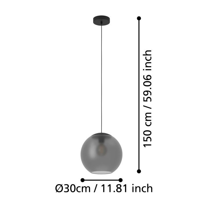 Κρεμαστό Φωτιστικό D30xH150cm Μονόφωτο Μπάλα 1xE27 Μαύρο Μέταλλο-Γκρι Γυαλί Eglo Arangona 390212