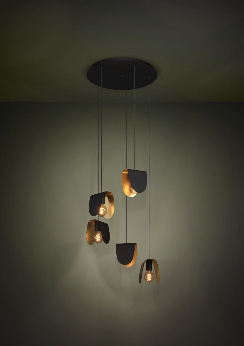 Κρεμαστό Φωτιστικό D50xH150cm Πεντάφωτη Ροζέτα 5xE27 Μαύρο-Χρυσό Eglo Serenara 390183
