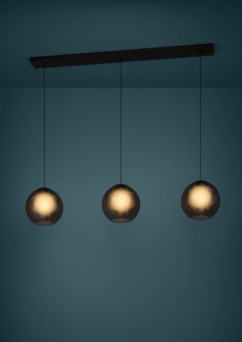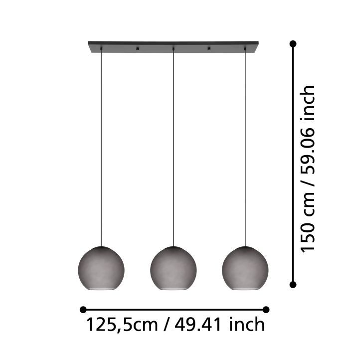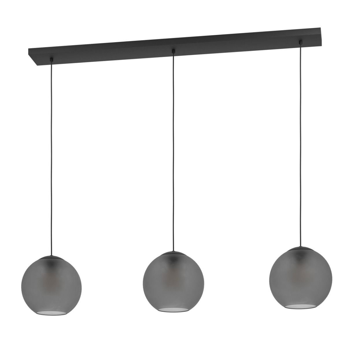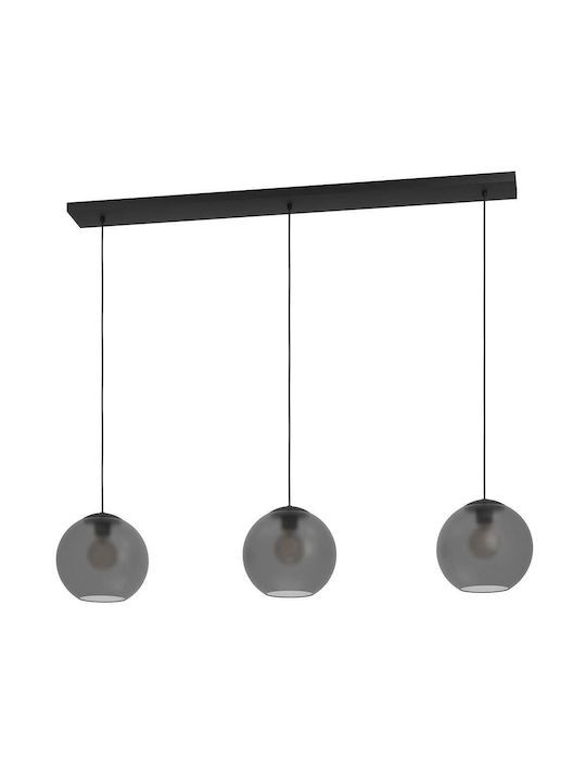 Κρεμαστό Φωτιστικό L125,5xH150cm Τρίφωτη Ράγα 3xE27 Μαύρο Μέταλλο-Γκρι Γυαλί Eglo Arangona 390214