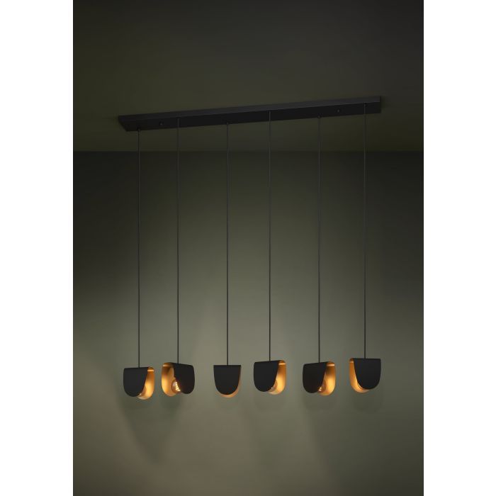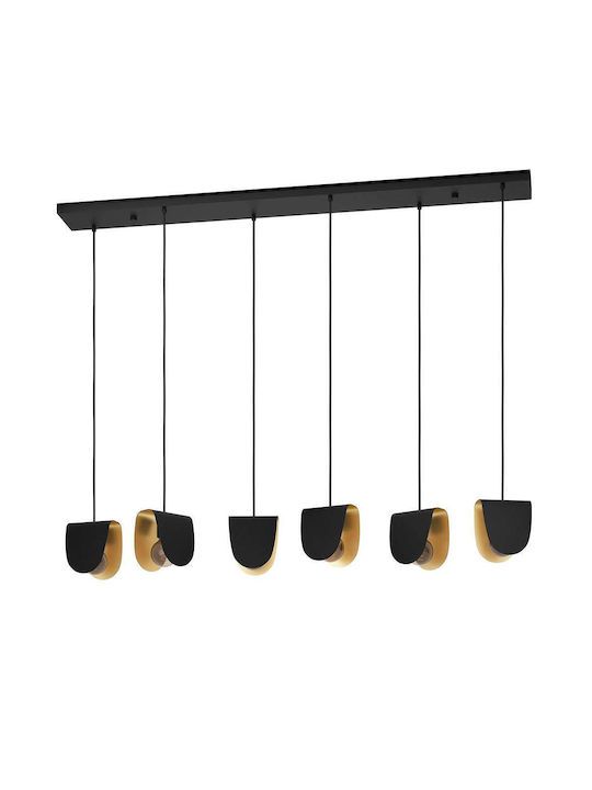 Κρεμαστό Φωτιστικό L138xH150cm Εξάφωτη Ράγα 6xE27 Μαύρο-Χρυσό Eglo Serenara 390184