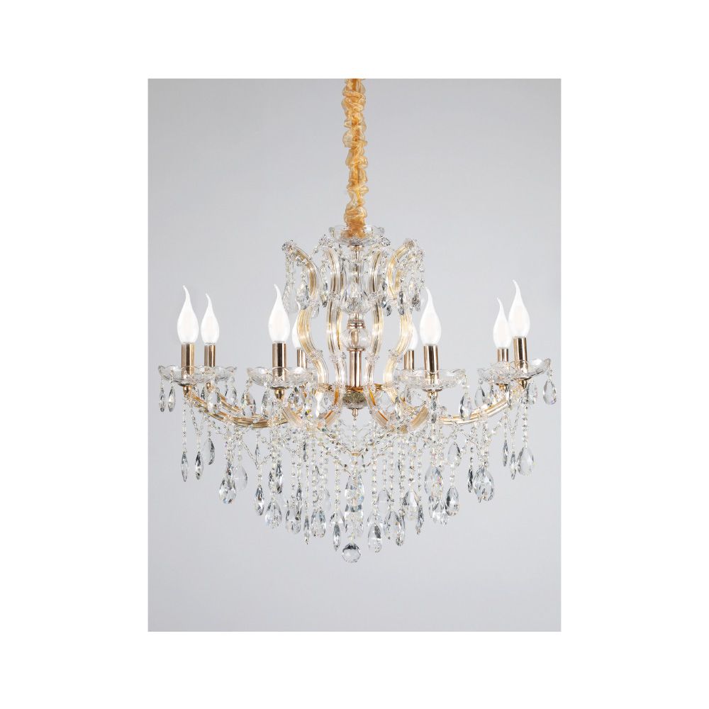 Κρεμαστό φωτιστικό από χρυσό μέταλλο γυαλί και κρύσταλλα 8XE14 D:80cm 5244-8-Χρυσό