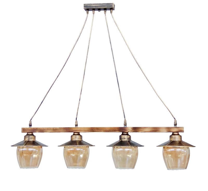 Κρεμαστό φωτιστικό με ράγα ξύλινη 4φωτο ,γυαλιά μελί σε χρώμα μπρονζέ R-98CABLE RAGA 4/L BRONZE