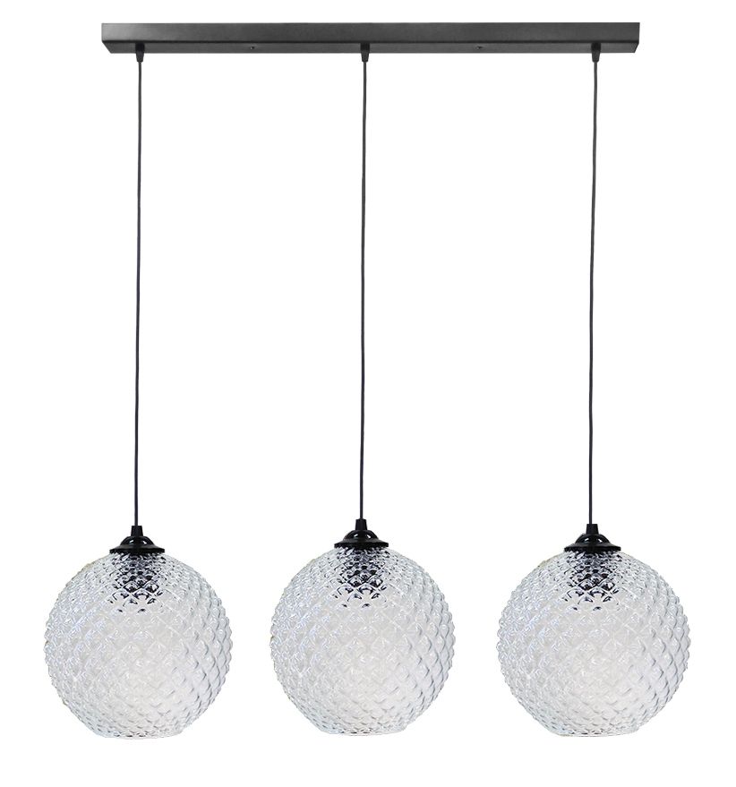 Κρεμαστό φωτιστικό 3φωτο μεταλλικό μαύρο, ράγα 5010/3 RAGA BL-TRANSPARANTE Τεχνικά χαρακτηριστικά Μεταλλική βάση / γυάλινα Χρώμα Μαύρο / διάφανο H96 x 90 x Φ25cm 3 χ E/27