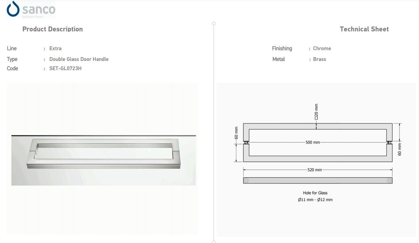 Λαβή Διπλή Χρωμέ για τζάμι W52xD6 cm Sanco Glass Door Accessories SET-GL0723-Α03