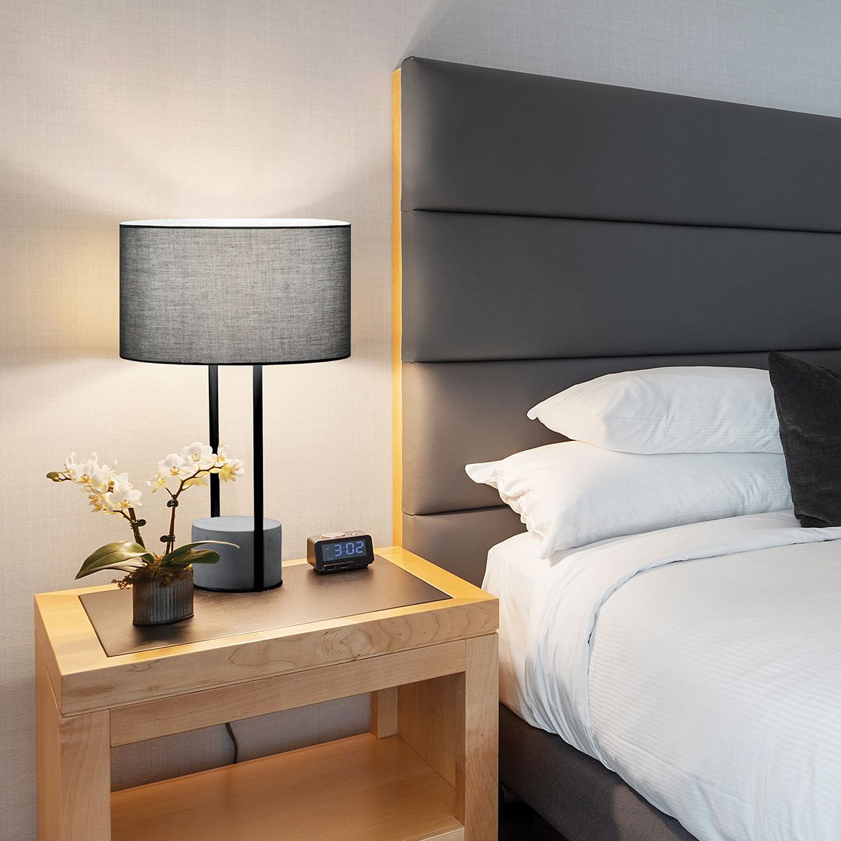 Λαμπατέρ Επιτραπέζιο 1xE27 Ø300xØ125xH470mm Βάση Μέταλλο Μαύρο & Τσιμέντο-Καπέλο Γκρι Viokef Allegro 4219400